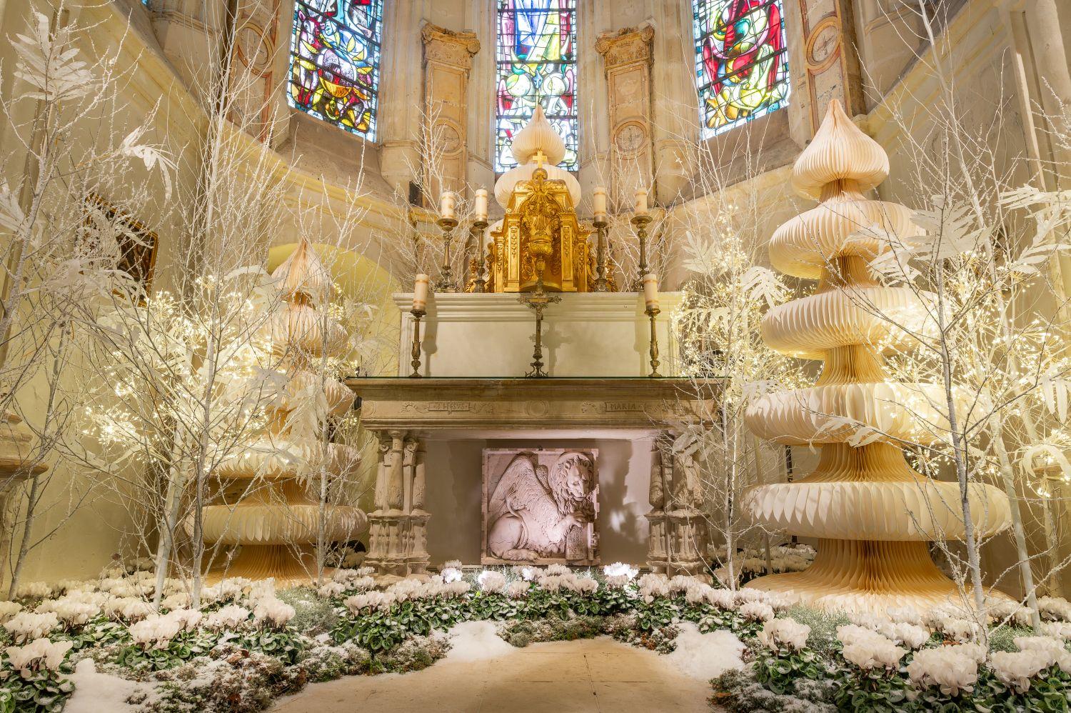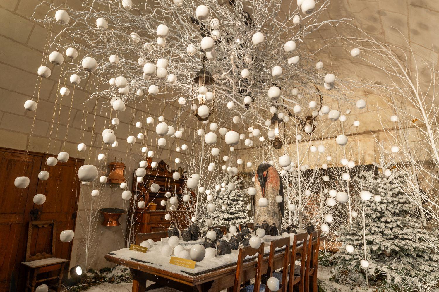 Chenonceau Castle. - The favourite residence of several queens takes visitors on a journey to the Far North. The forest of snow-covered birch trees and tall white firs in the grand gallery is almost enough to make you shiver! The tables in the kitchens are laden with frosty delicacies, and chocolate penguins populate the pantry, which has been transformed into an ice floe. A sparkling world.