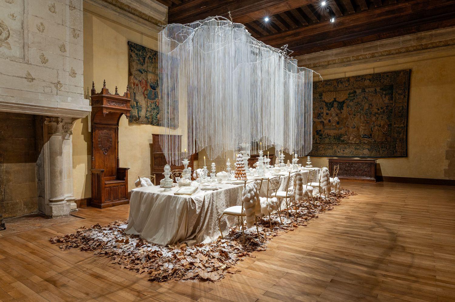 Azay-le-Rideau Castle. - If gluttony is a nasty habit, you won't gain a single gram in this beautiful castle. Because here, in the realm of fairy tales, delicacies can unfortunately only be enjoyed with the eyes, even though all you want to do is take a seat at one of the sumptuous tables inspired by the stories of your childhood. A crystal-clear universe brings Elsa to life, a fir tree decorated with apples recalls the tale of Snow White, and the doors of a wardrobe open onto the frosty landscapes of Narnia. Porcelain from the Gien factory and glasses from the Montbronn crystal factory add a touch of elegance to the imaginative decorations and magnificent collections of the château. The refined creations of Corinne Bernizet (Baucis and Philémon), Véronique Pineau, Charlotte Terriou and Véronique Chavet bring to life a world of magic and delights.